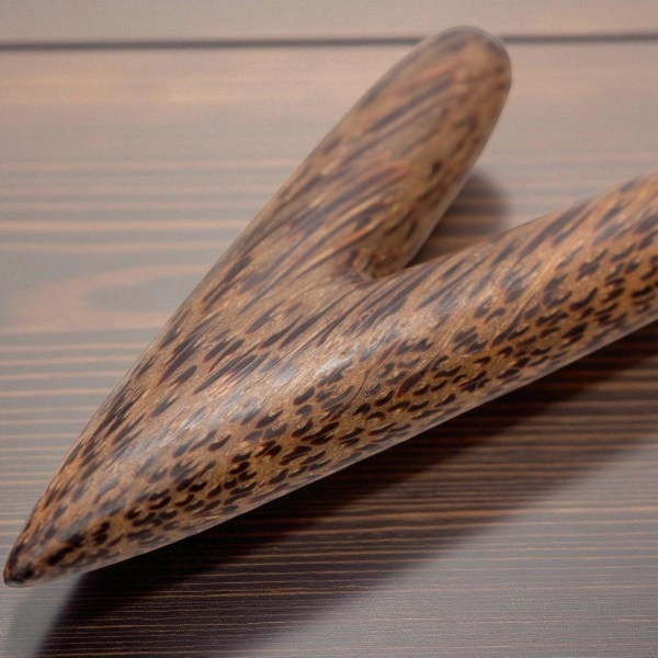 Das Kuripe aus Kokosnuss besticht durch seine faszinierende, gesprenkelte Optik, die jedes Objekt zu einem handgefertigten Einzelstück macht. Kokosnussholz zeichnet sich durch seine charakteristische Maserung aus, die die natürliche Ästhetik der Tropen widerspiegelt.