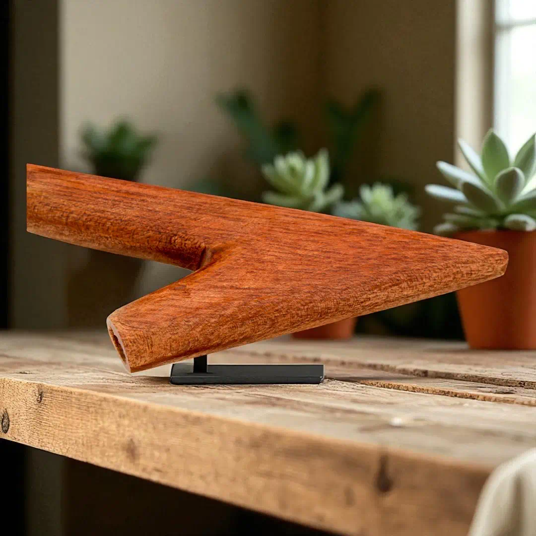 Die Kuripe aus Palo Sangre ist ein außergewöhnliches Kunstwerk, das von peruanischen Handwerkern mit höchster Präzision und Hingabe gefertigt wird. Diese Meisterwerke werden aus einem einzigen Stück Palo Sangre Holz geschnitzt, auch bekannt als „Blut des Waldes“. Dieses tiefrote Holz ist nicht nur für seine intensive Farbe bekannt, sondern auch für seine kraftvolle, erdende Energie.