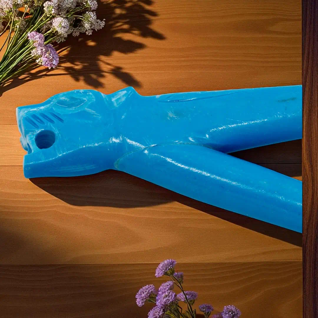 Das Kuripe aus Stein, meisterhaft von peruanischen Handwerkern gefertigt, ist ein beeindruckendes Zeugnis der indigenen Steinmetzkunst. Die kunstvoll eingearbeiteten Tiermotive – Jaguar und Adler – machen dieses Objekt zu einem besonderen Sammlerstück, das die tief verwurzelte Symbolik der Anden-Kultur widerspiegelt.