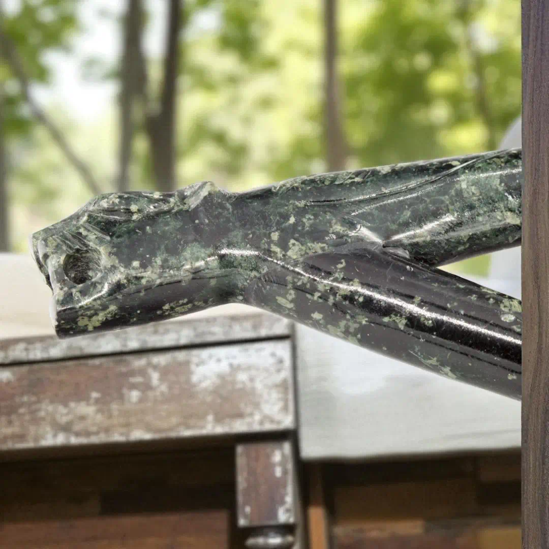 Der Adler: Als majestätisches Symbol der Lüfte steht der Adler für Weitsicht und Perspektive. In der indigenen Kultur wird er oft als Zeichen für Klarheit und die Verbindung zum Himmel geschätzt. In Stein verewigt, verleiht er dem Objekt eine zeitlose Eleganz und eine beeindruckende Detailtiefe.