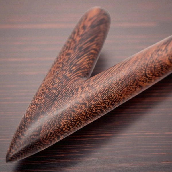 Tamarindenholz ist für seine Härte und seine beeindruckende dunkle Optik bekannt. Dieses Kuripe wird auf Bali von erfahrenen Handwerkern gefertigt, die die natürliche Stärke dieses Holzes in ein ergonomisches Design bringen. Energetisch wird Tamarinde oft mit Ausdauer und der Verbindung zu den Ahnen assoziiert.