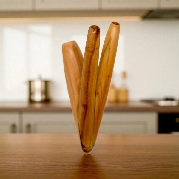 Das Holz wurde sorgfältig geschliffen, poliert und mit Holzbalsam behandelt, um eine weiche, angenehme Haptik zu schaffen. Jedes Stück trägt die Energie des tropischen Waldes in sich – eine Erinnerung an das natürliche Gleichgewicht der Welt.