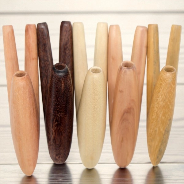 Erhältlich in Tamarind, Cemara, Savo, Krokodilholz und Teak, trägt jedes Holz seine eigene Schwingung: