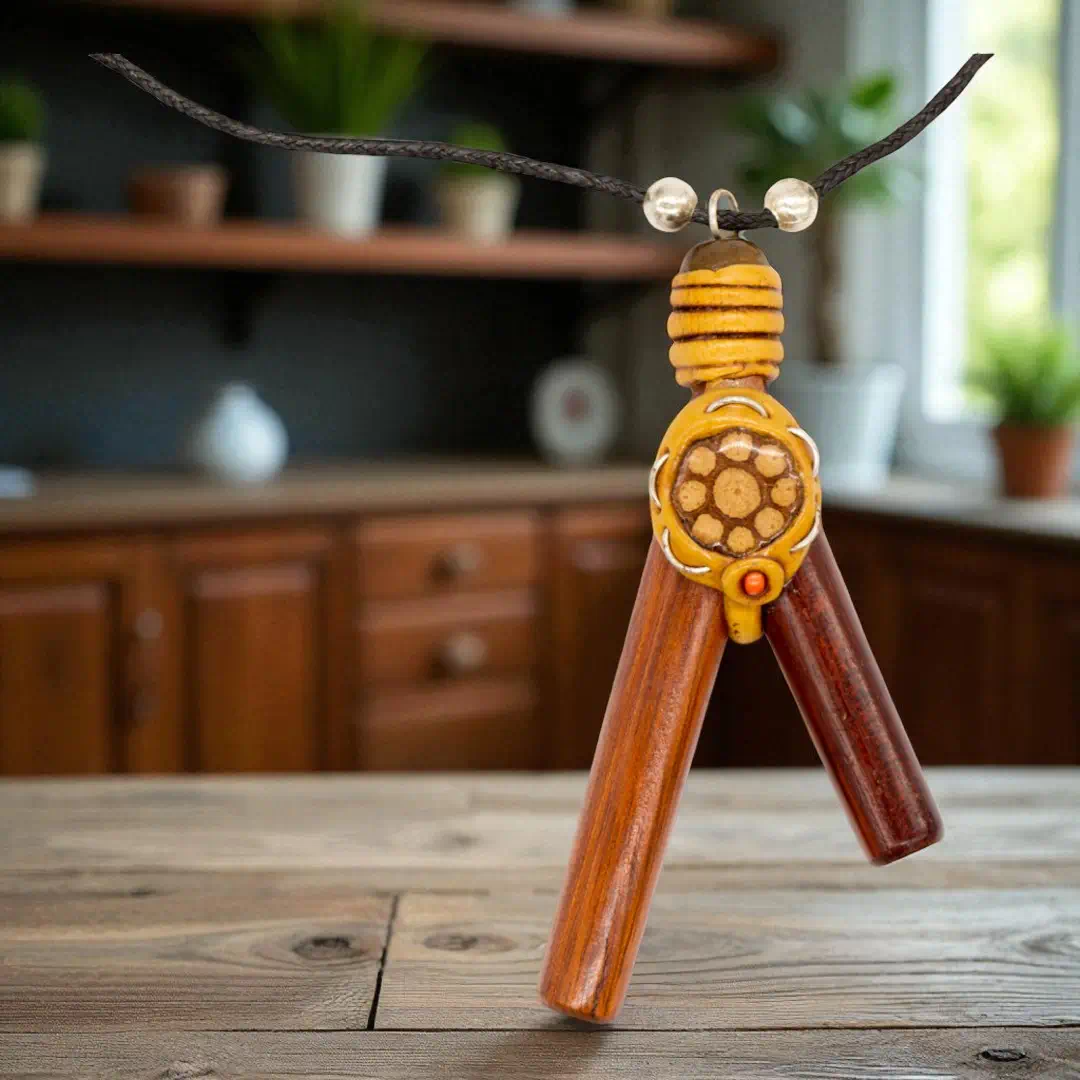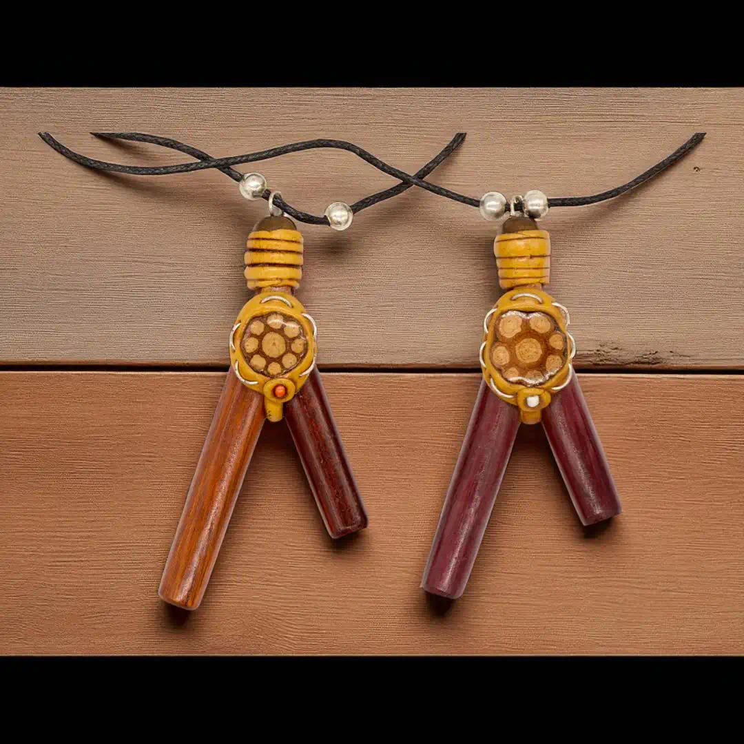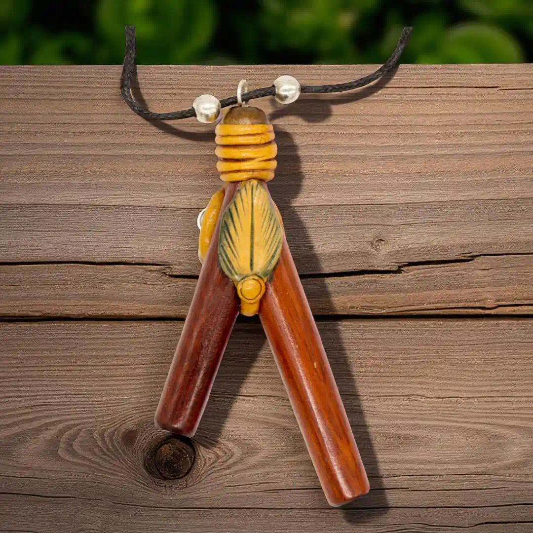 Dieses handgefertigte Objekt aus Peru ist ein besonderes Zeugnis amazonischer Handwerkskunst. Durch das integrierte Medaillon aus echtem Amazonas-Holz (Cielo-Liane) trägst du ein Stück traditioneller Naturgeschichte direkt als Schmuckstück.