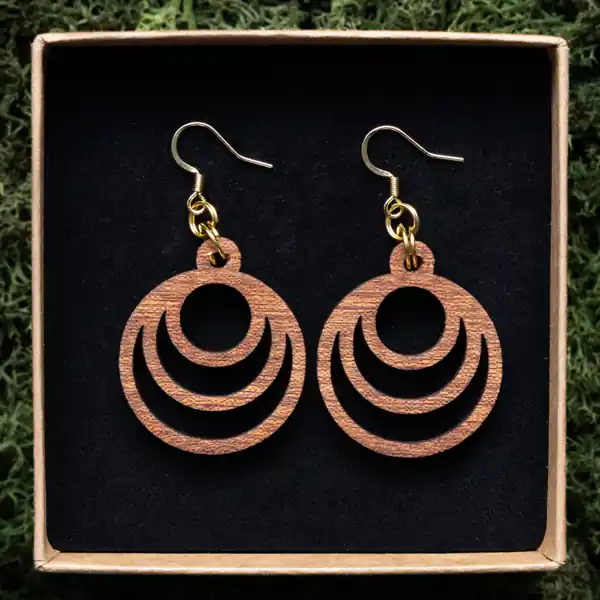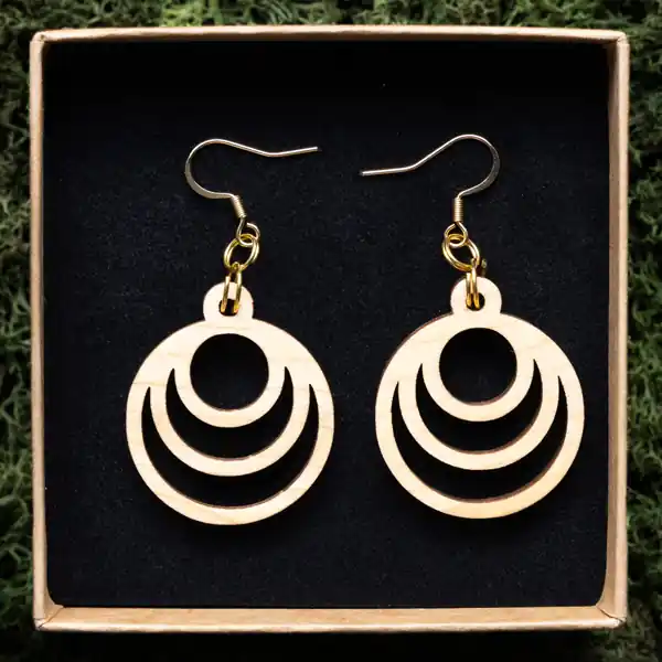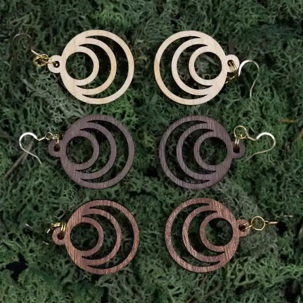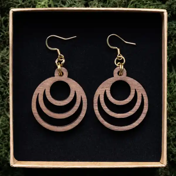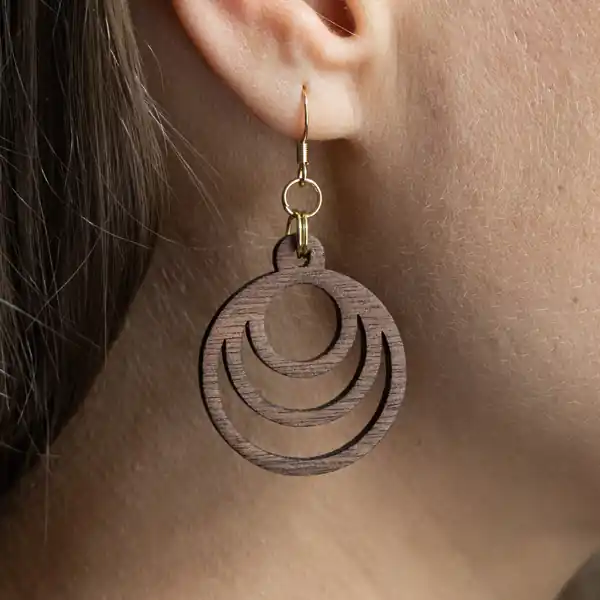 Tauche ein in die Welt der Schönheit und Innovation mit unserem Ohrring Fraktal Moon. Jedes Paar wird sorgfältig aus einer Auswahl von drei exquisiten Holzarten gefertigt: Ahorn, Mahagoni und Walnuss. Unsere erfahrenen Handwerker bei Oswood verwenden einen hochpräzisen Laser, um die filigranen Fraktalmuster in das Holz zu schneiden, wodurch jedes Stück zu einem einzigartigen Kunstwerk wird. Durch die Kombination von moderner Technologie und traditionellem Handwerk entstehen diese Ohrringe, die nicht nur Ihr Outfit ergänzen, sondern auch Ihre Persönlichkeit unterstreichen.
