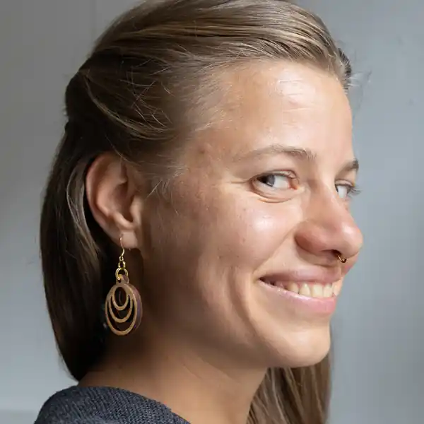 Die natürliche Schönheit des Holzes trifft auf die faszinierende Komplexität von Fraktalmustern in unserem Ohrring Fraktal Moon. Jedes Stück ist ein Unikat, das die Schönheit der Natur widerspiegelt und gleichzeitig eine zeitlose Eleganz ausstrahlt. Mit ihrer leichten und doch robusten Konstruktion sind diese Ohrringe perfekt für den täglichen Gebrauch geeignet und verleihen jedem Look einen Hauch von Mystik und Raffinesse.