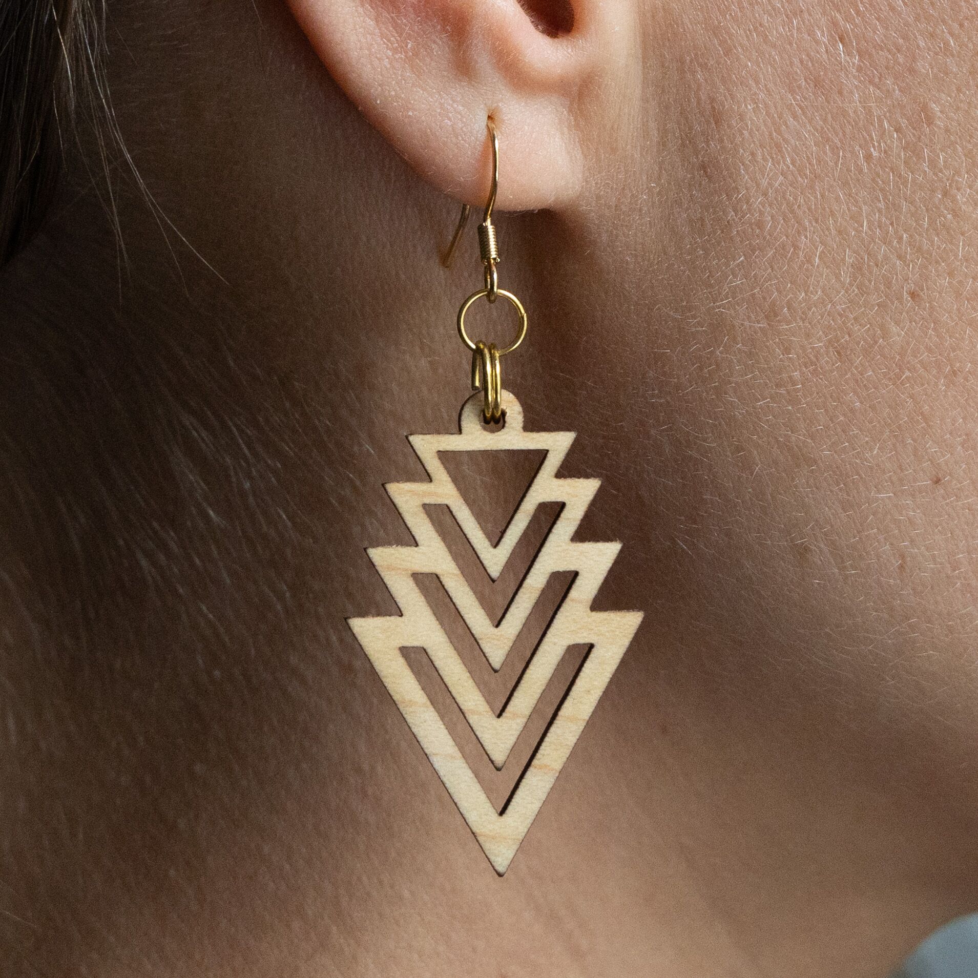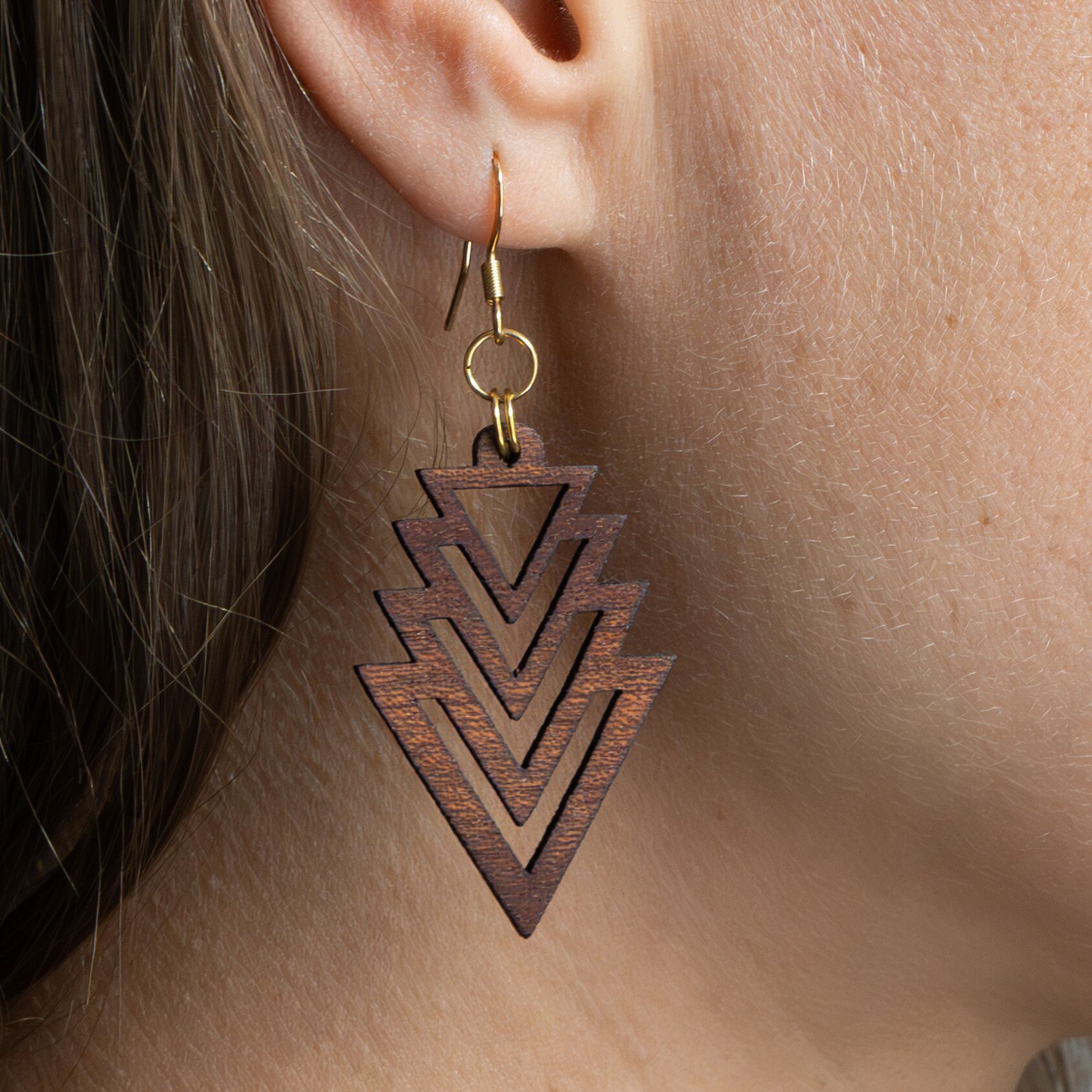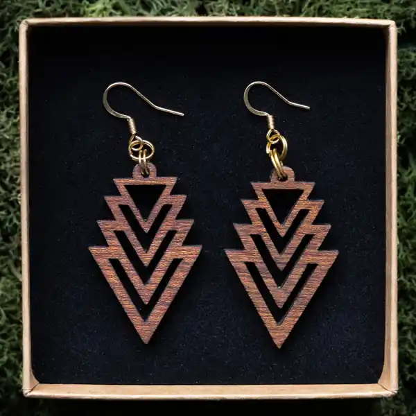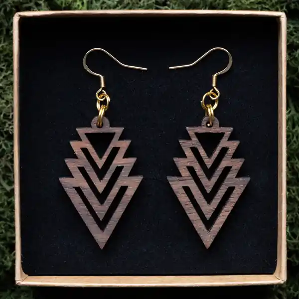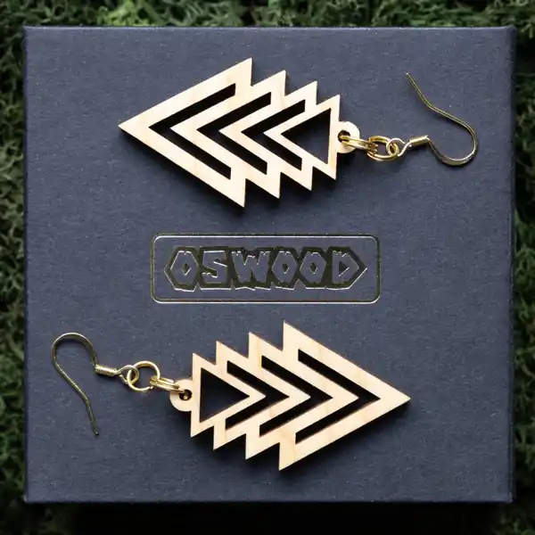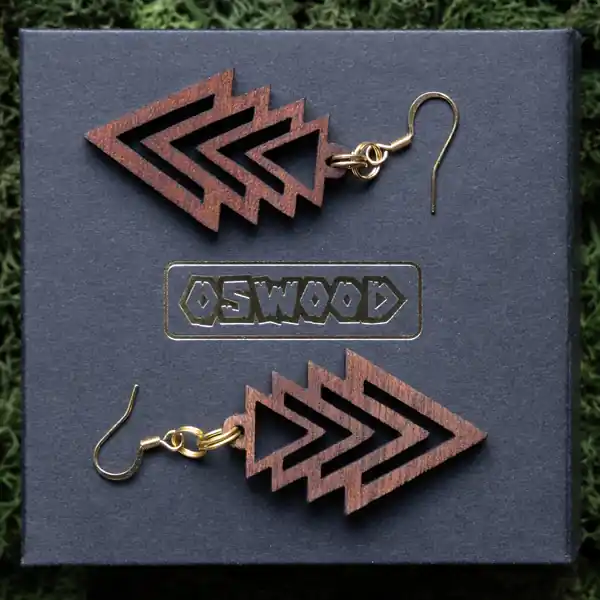 Tauche ein in die Welt der Schönheit und Innovation mit unserem Ohrring Fraktal Triangle. Jedes Paar wird sorgfältig aus einer Auswahl von drei exquisiten Holzarten gefertigt: Ahorn, Mahagoni und Walnuss. Unsere erfahrenen Handwerker bei Oswood verwenden einen hochpräzisen Laser, um die filigranen Fraktalmuster in das Holz zu schneiden, wodurch jedes Stück zu einem einzigartigen Kunstwerk wird. Durch die Kombination von moderner Technologie und traditionellem Handwerk entstehen diese Ohrringe, die nicht nur Ihr Outfit ergänzen, sondern auch Ihre Persönlichkeit unterstreichen.