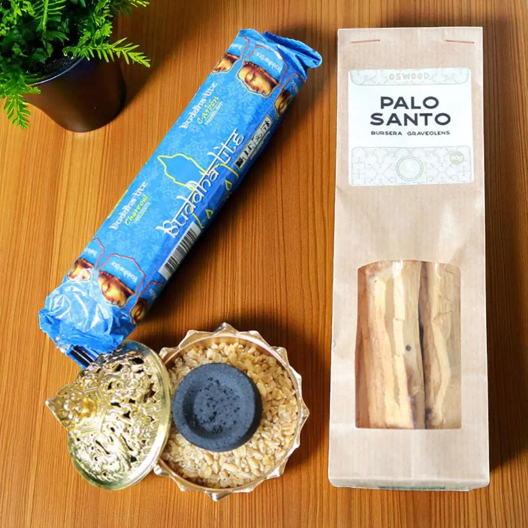 Begleitet wird die Räucherschale von 10 Stück Buddha-Lite Räucherkohle, die sich schnell und leicht anzünden lässt. Diese Kohle ist ideal, um eine gleichmäßige und langanhaltende Räucherung zu gewährleisten. Kombiniert mit dem Palo Santo aus dem Oswood Sortiment, erreicht man eine intensivere und längere Räucherung, als wenn man das Holz nur mit einem Feuerzeug anzündet.