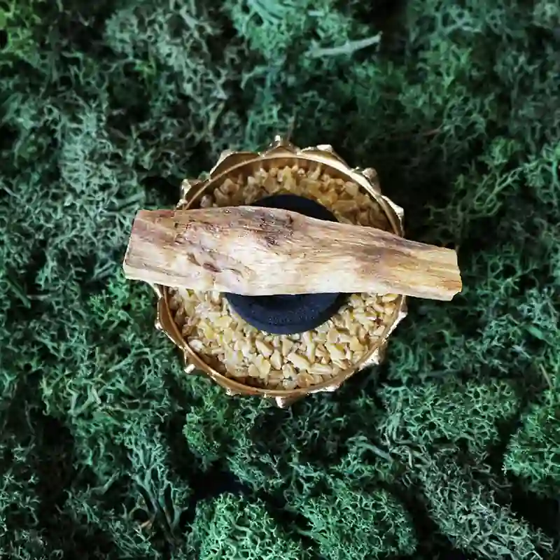 Das Set umfasst zudem 50 Gramm reines Palo Santo, dessen heilende und reinigende Eigenschaften seit Jahrhunderten geschätzt werden. Der aromatische Duft des Palo Santo erfüllt den Raum mit einer beruhigenden Energie und schafft eine Atmosphäre der Gelassenheit und des Friedens.