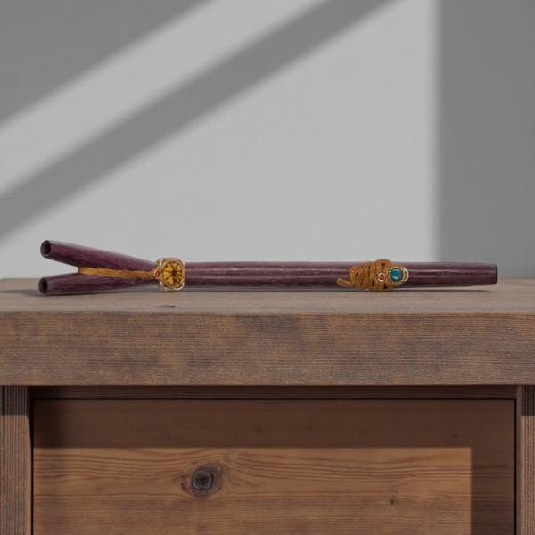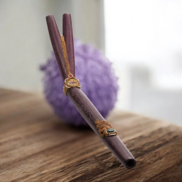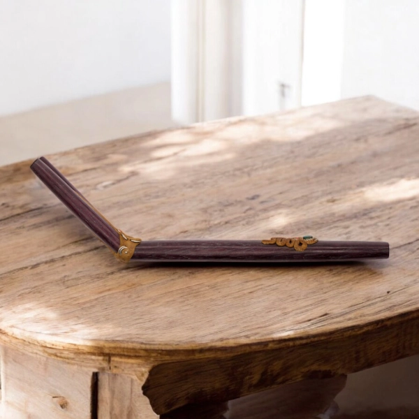 Amaranth ist bekannt für seine tiefe, dunkle Farbe und seine außergewöhnliche Härte, die diesem Werkzeug eine besondere Stabilität und Wertigkeit verleiht. Die doppelte Bauweise des Tepis ermöglicht vielseitige Anwendungen und verschiedene Intensitäten, was es zu einem idealen Begleiter für fortgeschrittene wie auch erfahrene Rapé-Praktizierende macht. Jeder Schritt des Herstellungsprozesses – vom Schleifen bis zur abschließenden Ölbehandlung – erfolgt in traditioneller Handarbeit.