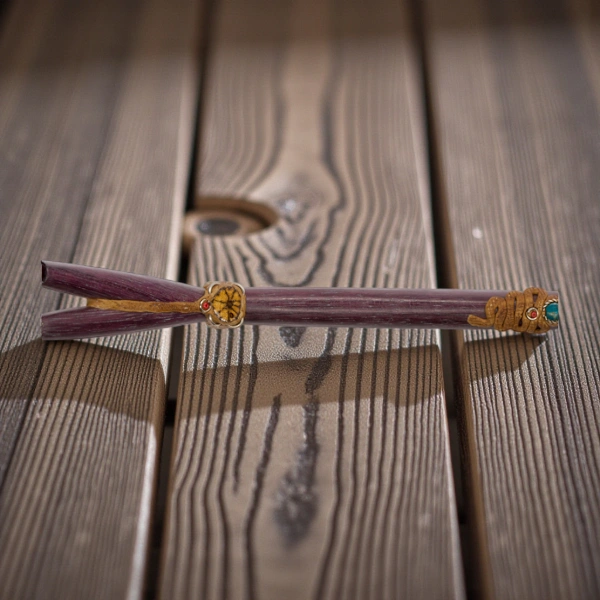 Amaranth ist bekannt für seine tiefe, dunkle Farbe und seine außergewöhnliche Härte, die diesem Werkzeug eine besondere Stabilität und Wertigkeit verleiht. Die doppelte Bauweise des Tepis ermöglicht vielseitige Anwendungen und verschiedene Intensitäten, was es zu einem idealen Begleiter für fortgeschrittene wie auch erfahrene Rapé-Praktizierende macht. Jeder Schritt des Herstellungsprozesses – vom Schleifen bis zur abschließenden Ölbehandlung – erfolgt in traditioneller Handarbeit.