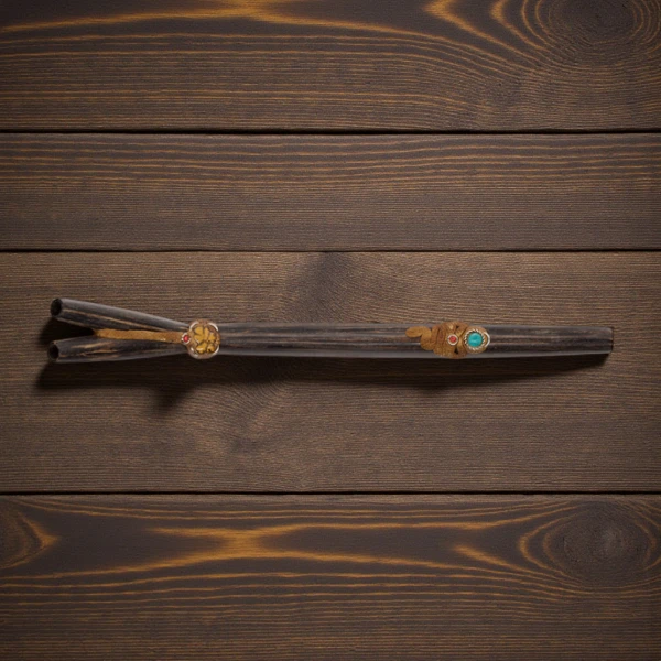 Durch seine doppelte Bauweise ermöglicht es unterschiedliche Anwendungsarten oder Intensitäten, was dieses Werkzeug besonders vielseitig macht. Jede Oberfläche wird sorgfältig von Hand geschliffen und mit natürlichen Ölen behandelt, um die charakteristische Tiefe und Robustheit der Chonta zu bewahren. Das Ayahuasca-Medaillion verleiht dem Tepi Double aus Chonta mit Medaillion zusätzlich eine spirituelle Ausrichtung, die Rituale stärkt, klärt und harmonisiert.