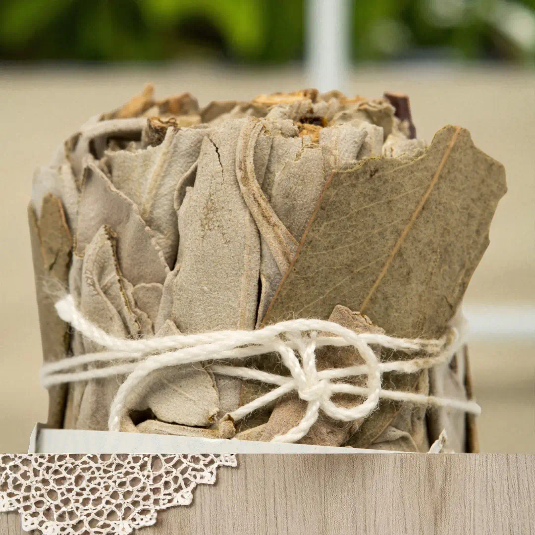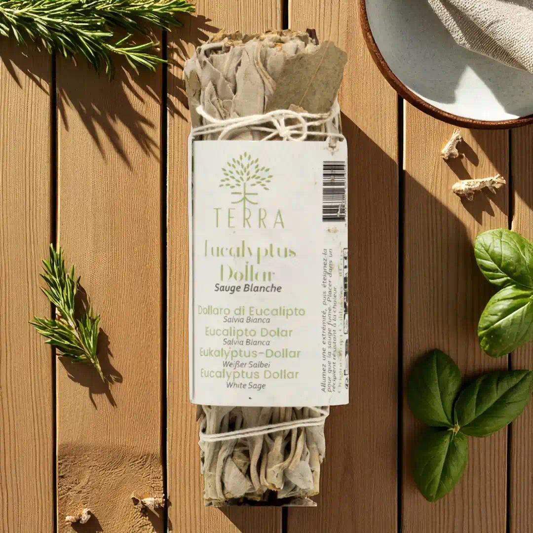 Das Ritual mit weißem Salbei und Eukalyptus ist eine Einladung, loszulassen und Raum für Frieden und Harmonie zu schaffen.